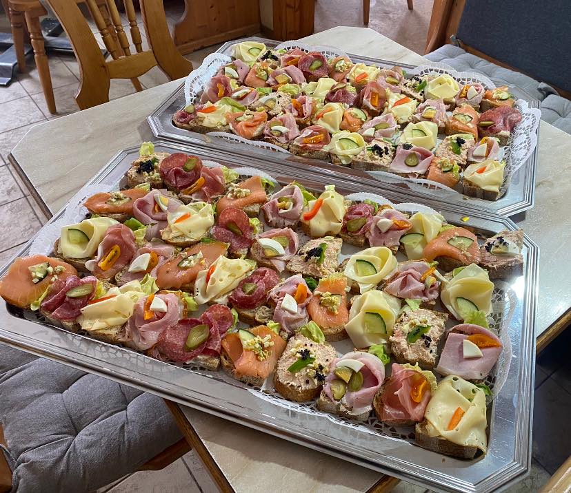 Service service Kaffee 100% Arabica Kaffeebohnen in einer nachhaltigen Verpackung, Made in Salzburg! Torten Torten ganz nach Ihren wünschen gestaltet Belegte Brötchen und Gefüllte Weckeln und Verschiedene Platten nach Wahl Auf Wunsch machen wir auch Belegte Brötchen und gefüllte Weckerl und verschiedene Platten für ihre Feier Buffet für Veranstaltungen Wir planen auch mit Ihnen Ihre persönliche Veranstaltung von Essen bis hin zu den Getränken. Kuchenvitrine Wechselndes Sortiment an verschiedensten Kuchen und Mehlspeisen in der Kühl Vitrine Wochenkarte Wöchentliche wechselnde Menükarte Vegetarisch/Vegane Alternativen möglich